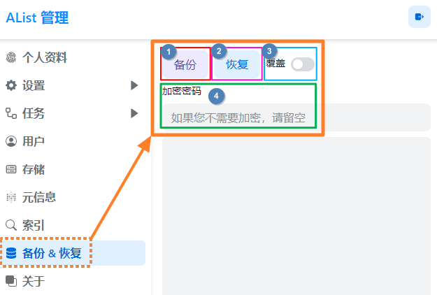 data.db-shmanddata.db-wal, they must be backup together. - It is recommended to stop running Alist and then backup, so that the two files of