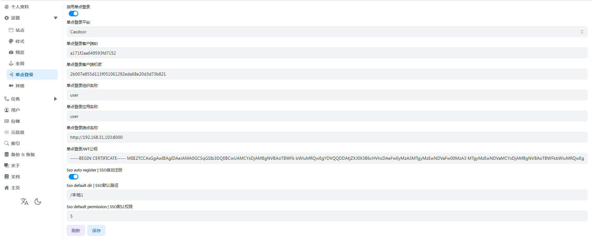 - Just fill in the corresponding parameters in the Alist background single sign-on