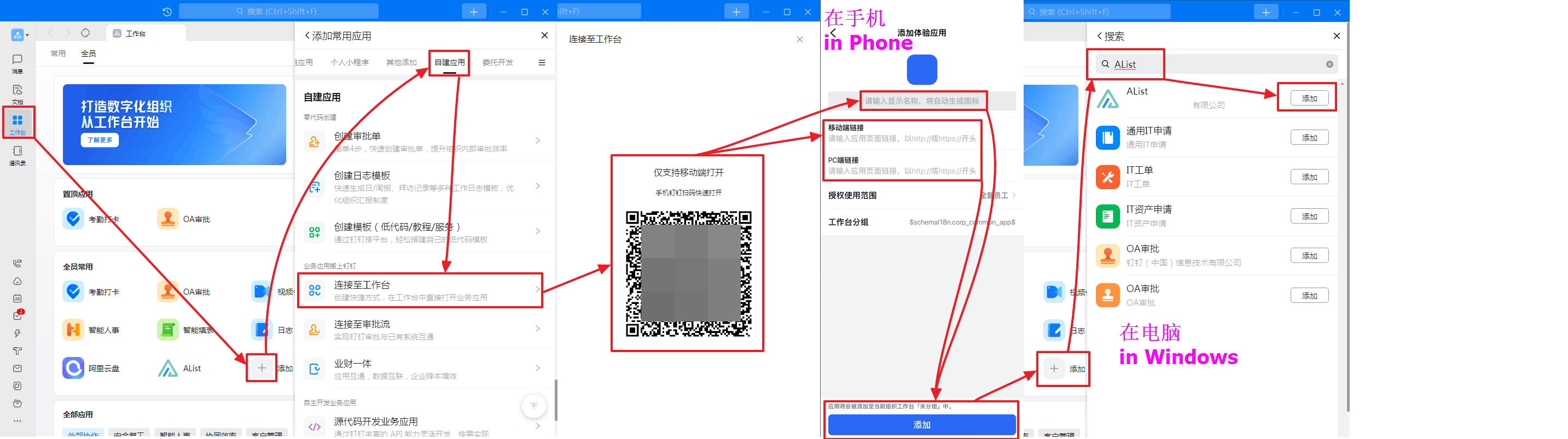 How to create the application in Dingtalk workbench