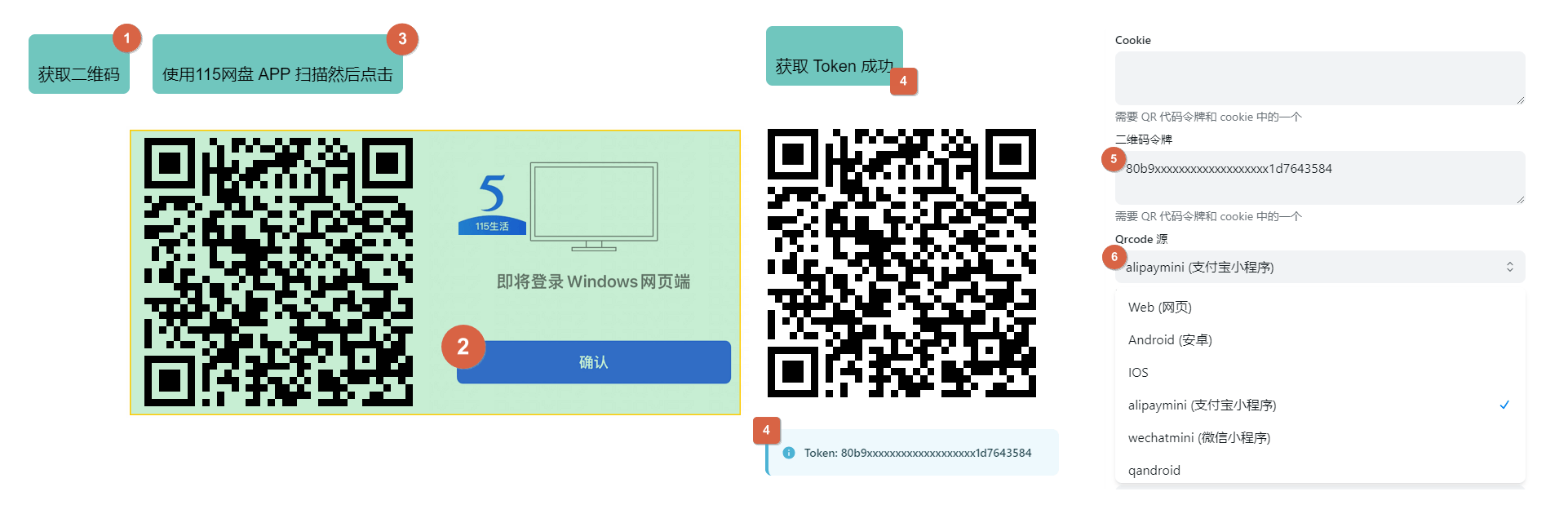 Use 115 Cloud APP To Scan Then ClickButton, Get Token - You will get Token added to the