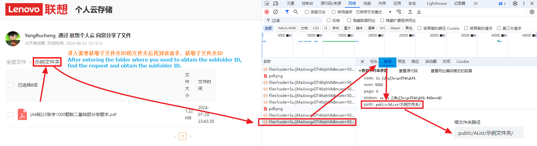 Subfolder ID:After entering the folder where you need to obtain the subfolder ID, find the request and obtain the subfolder ID.