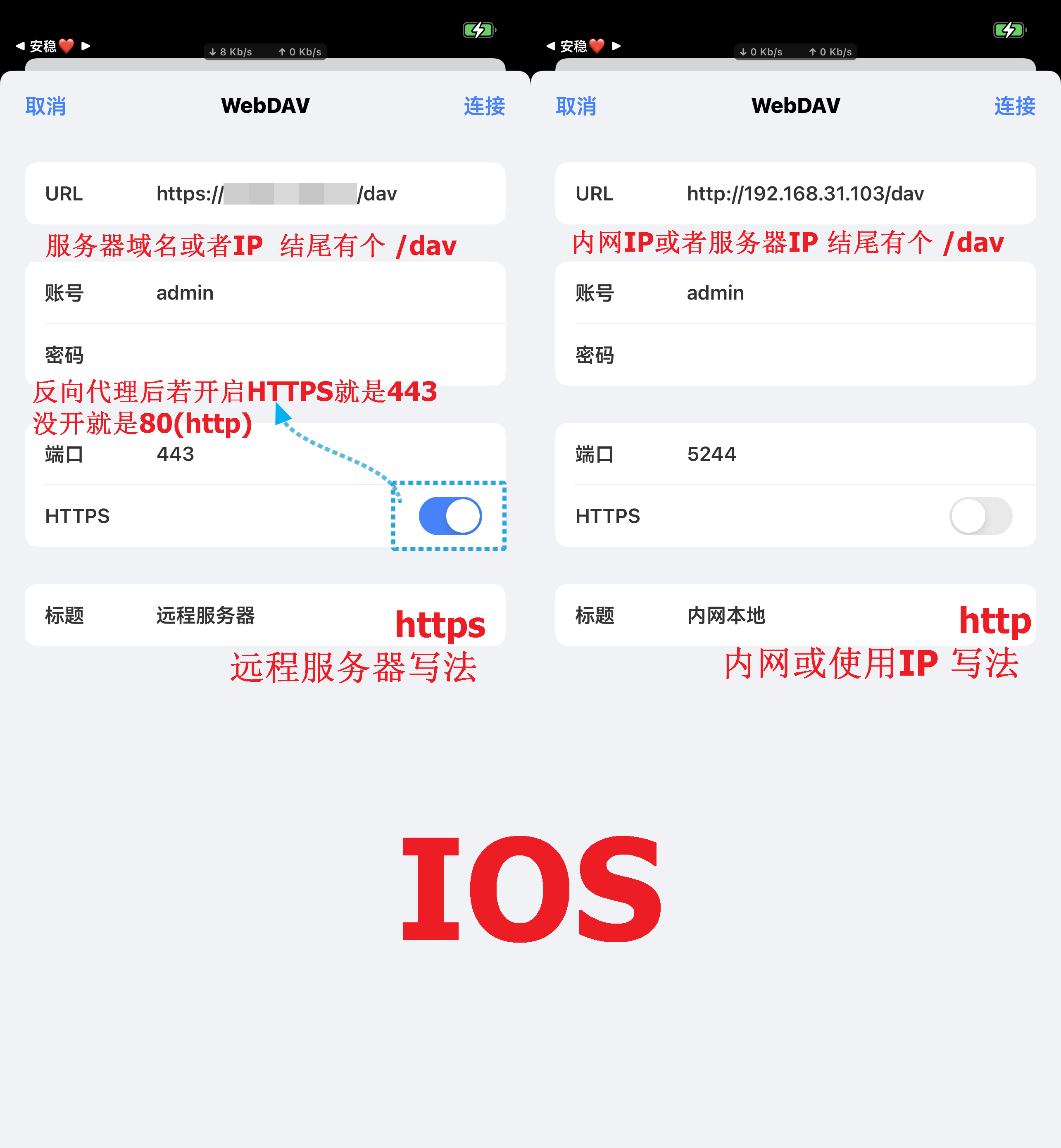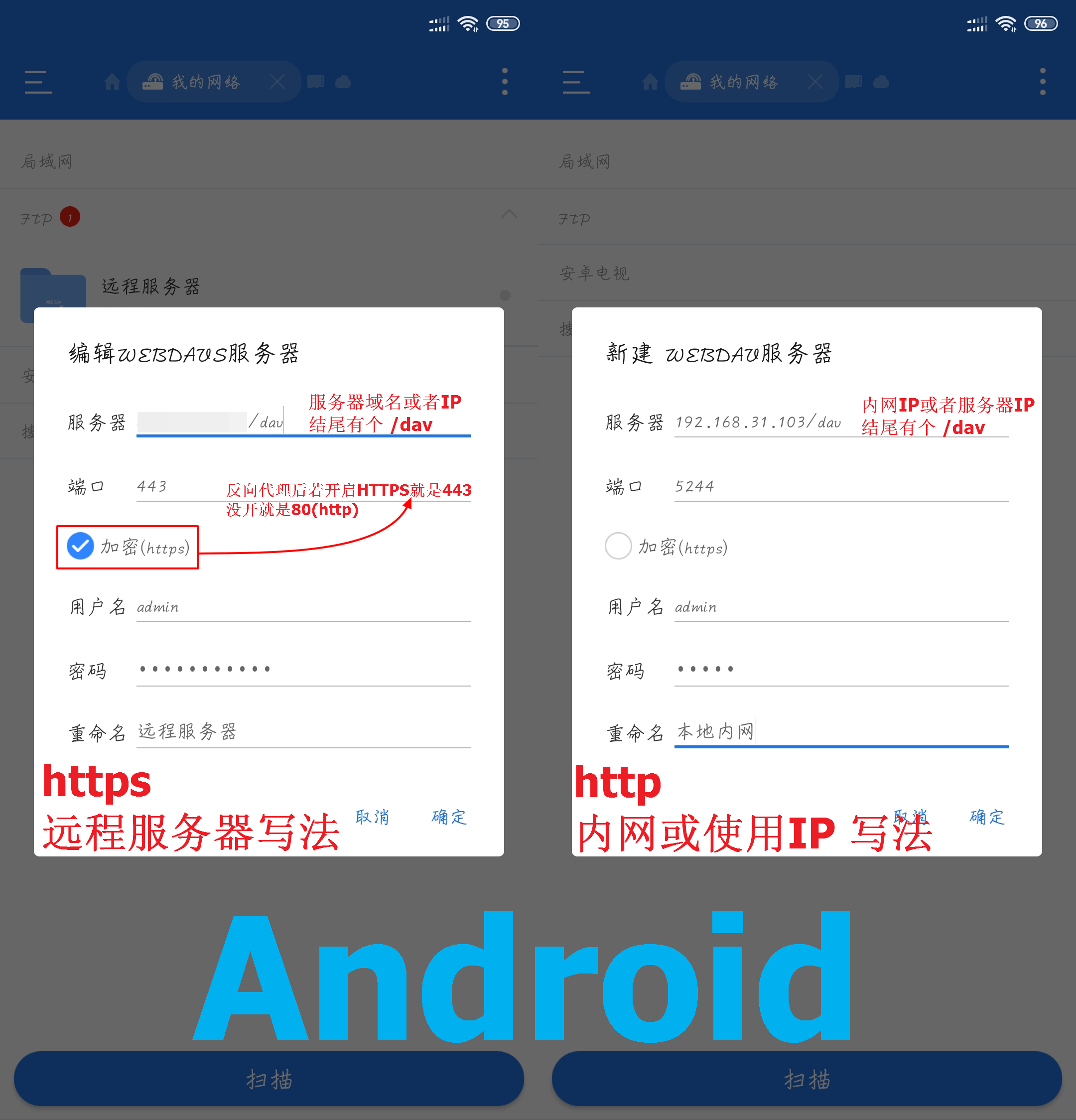 Give a few examples of filling in WebDav, the account password is the account password of your AList user